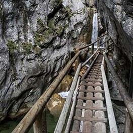 SLOVENSKO / 2017 MEDVĚDÍ SOUTĚSKA naprosto jedinečný výstupprostřednictvím stovek dřevěných lávek, žebříků a můstků. |